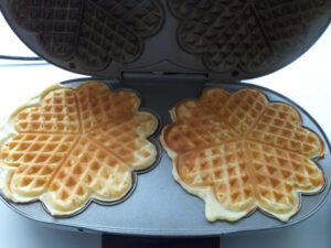 Die eine Gruppe hat sich um die Vorbereitung des Teiges und das Backen der Waffeln gekümmert.